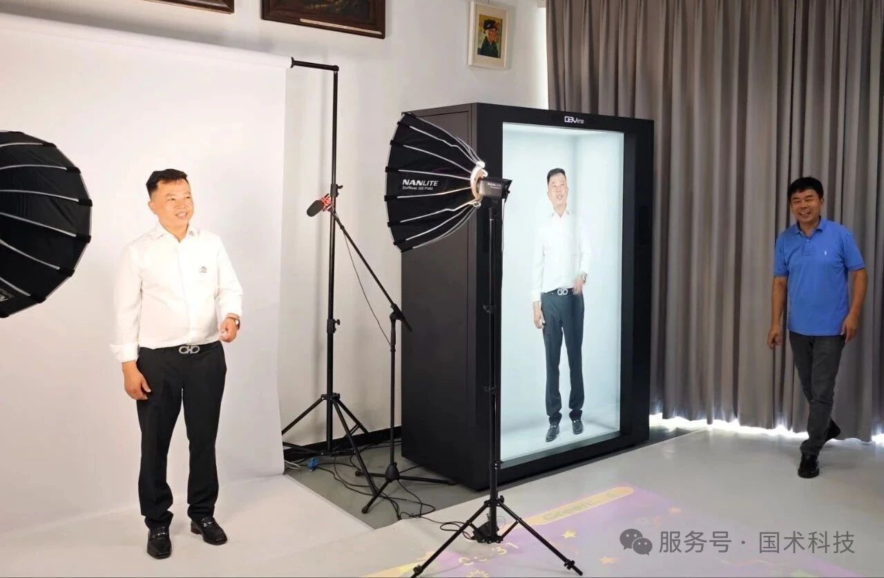 在赛未来中心展厅,“OBVerse 奥比全息舱”带来的智能交互体验令代表团印象深刻。“简直就像是真人走进了舱里!”代表团成员感叹道。在工作人员的指导下,曹隆科会长走进指定区域,通过全息舱配套的复刻系统,实时生成自己的数字人分身,呈现4K超高清的裸眼3D视觉效果。