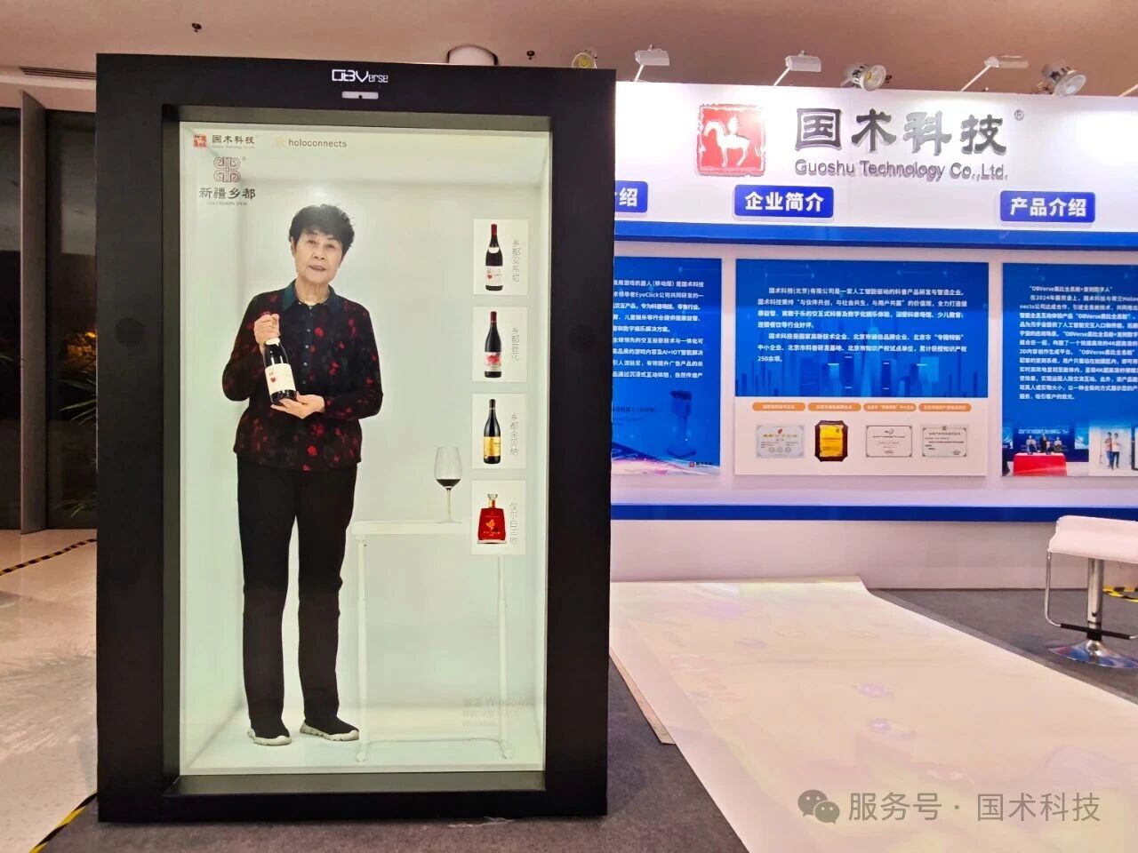 “OBVerse奥比全息舱+复刻数字人”是国术科技与荷兰Holoconnects公司共同研发的人工智能全息互动体验产品。在2024年服贸会上,国术科技与荷兰Holoconnects公司达成合作,引进全息舱技术,推出“OBVerse奥比全息舱”。“OBVerse奥比全息舱+复刻数字人”结合在一起,构建了一个快速高效的4K超高清的裸眼3D内容创作生成平台,可广泛用于党建展厅讲解、政务大厅导览、科技馆科普内容创作、博物馆口述历史、文旅IP打造、机场导览、酒店前台服务等场景。2025年5月,“OBVerse奥比全息舱”入选《北京市专精特新企业出口产品参考目录》。2025年8月,国术科技联合中关村智联软件服务业质量创新联盟等单位牵头起草的《人工智能全息舱显示终端》(T/IQA 36—2025)团体标准发布,填补了国内外该类产品标准的空白。目前国术科技的全息舱产品已应用于新疆葡萄酒协会、新疆科技馆、2025北京曲艺创演周、2025年全国科技活动周、2025中国科幻大会、2025年中国国际服务贸易交易会、第九届中国戏曲文化周、“科技馆之城”科技文化进商圈活动等场景。